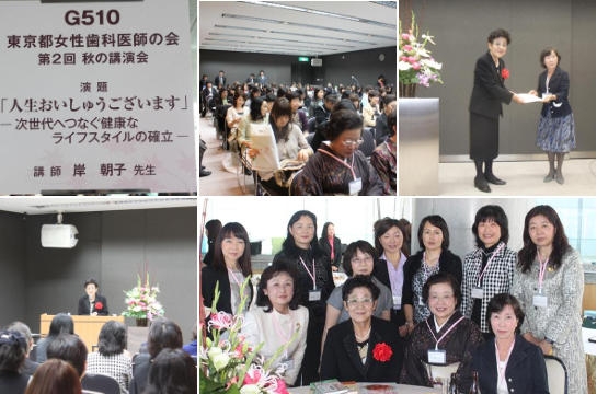 など、「食」に関わるお話を中心に、岸先生ご自身が、4人のお子さんを育てながら料理記者を続けて行かれた中で、ご長男を疫痢で亡くしてしまわれた悲しいご経験、家族の絆についてのお話、そして私たち女性に伝えたいこと、また仕事を持っている女性としての生き方、日々の過ごし方、家事の手抜き方(?)など、女性が仕事をしていく上でのヒントとなる、ひと味ちがったお話を伺えて、女性歯科医師の会ならではの楽しい講演会となりました。