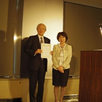 また、当会が東日本大震災に際し支援金を毎年送っている岩手県釜石市大槌町の保育園に震災後3年経過した現地に、会長難波みち子先生と奥田理子先生が3月末に足を運び、懇親会の会場でその様をスライドを使ってレポートしてくれました。