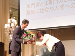 講演会終了後、講師の先生方に花束贈呈し、会場で集合写真を撮りました。
