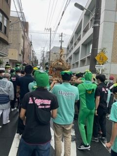 9月23日、当会で支援をしている、まごめ園の幸陽祭(学園祭)に佐々木理事と参加してきました。開会式最後の「馬込ほのぼの太鼓」で気合いを入れた利用者の皆様が練り歩く名物「カッパパレード」に同行して歩きました。お神輿を担いて町内を練り歩き、カッパえびせんと胡瓜を楽しそうに配っていただけるので、地域の方々も自然に集まって地域ぐるみの楽しいイベントになりました。4年ぶりの開催になりましたので皆さんとても楽しんでいらっしゃいました。